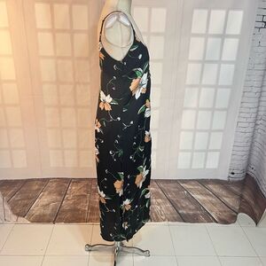 Features a sleeveless design with adjustable shoulder straps and button front closures. The dress is fully lined and showcases a beautiful floral print, making it perfect for any occasion. The lightweight fabric ensures comfort and style, ideal for both casual and semi-formal events.