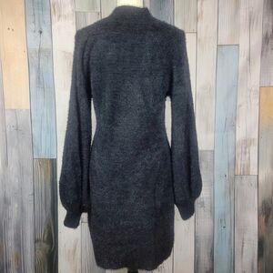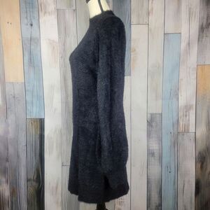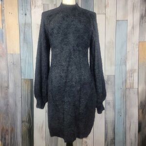Bardot Black Knit Fuzzy Mini Dress Balloon Sleeves Mock Neck Size Large