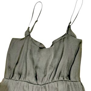 Bardot black satin jogger jumpsuit with joggers. Spaghetti straps and tie waist. Pockets. No belt but belt loops. Lightweight. Wrap top. Ideal for stylish outings. Just dry cleaned. Euc