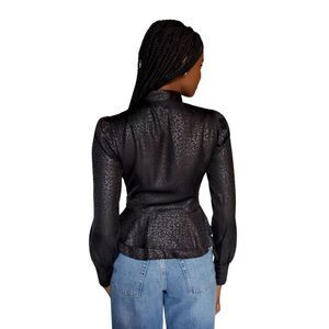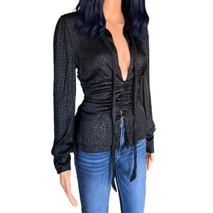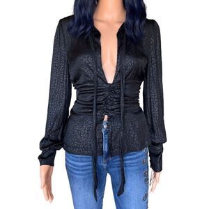 Bardot Black Plunge Tie Neck Satin Animal Print Blouse