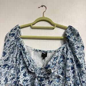 Bardot Blue Floral Linen Off The Shoulder Cropped Top Sz 2 NWT