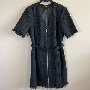 ✨ Bardot Boucle Tweed Zip Front Frayed Hem Dress Medium 8 Black