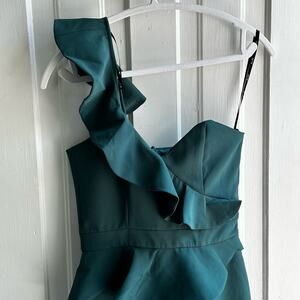 Bardot Camelia Ruffled One Shoulder Sheath Dress in Evergreen NWT