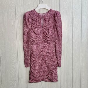 Bardot Charlotte Ruched Floral Mini Dress Pink Haze XS