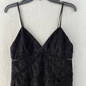 Bardot Cocktail Dress Womens M Black Spaghetti Strap Sheer Empire Waist Back Zip