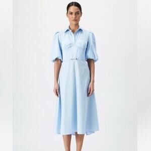 Bardot Corset Puff Sleeve Midi Shirt Dress in Cornflower Light Blue Size 6