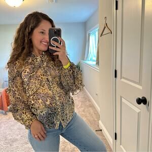 I adore this super pretty designer Bardot cream purple satin leopard cheetah printed long sleeve button front top/blouse