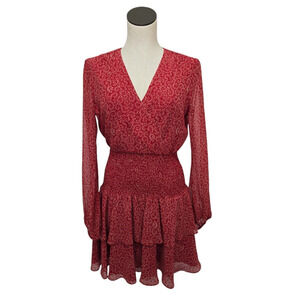 Bardot Dress Ditsy Shirred Mini Tier Long Sleeve Floral Smocked Layer Red Size 6