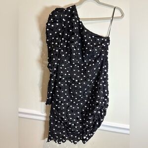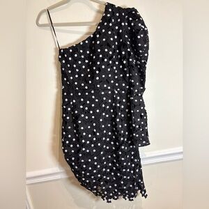 Bardot Effie One Shoulder Puff Sleeve Lace Dress In Black and Ivory Size 6