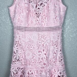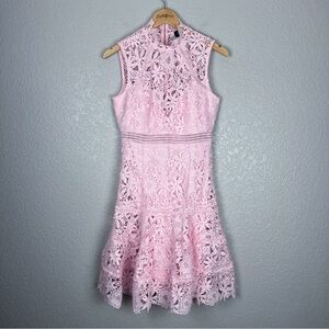 Tags: preworn, 53016DB, petal pink, fit & flare, 6 / S, small, pastel pink, light pink, pale pink, Bardot dress, date night, event, party, cocktail, New Year’s Eve, NYE, holiday, holidays, homecoming, prom, bridesmaid, bridal, bachelorette, valentine's, wedding guest, special event, special occasion, sophisticated, evening dress, birthday, glam, sexy, flirty, spring, springtime, summer, summertime, balletcore, hyperfem, princess, angelcore, babydoll, romantic, feminine, grilhoodcore, lacey, Revolve, Nordstrom, Macy's, cut out, gorgeous, high neck lace dress, floral applique lace dress, pink fit and flare dress, formal lace cocktail dress, sleeveless lace party dress, romantic wedding guest dress, lace graduation dress, lace prom dress, pink bridal shower dress, lace engagement dress, pastel lace dress