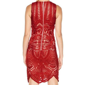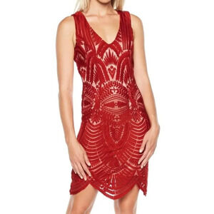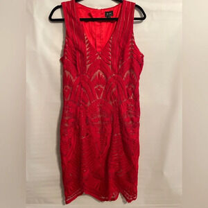 Excellent condition. This cosmopolitan cocktail sheath highlights the waist with darts, the legs with scallops and your charming self with equally interesting embroidery.
