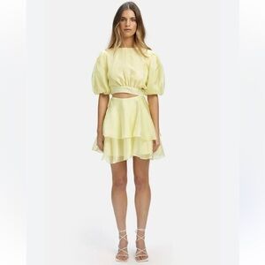 Bardot Enya Yellow Puff Sleeve Mini Dress XXL / 12