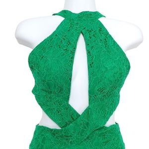 Bardot Fleur Halter Dress Fern Green Lace Sleeveless Open Back 6
