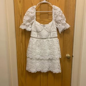 Bardot Floral Lace Mini Dress White