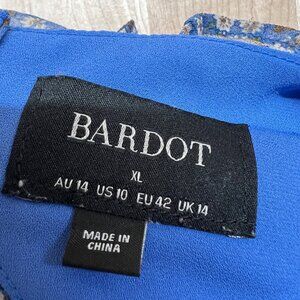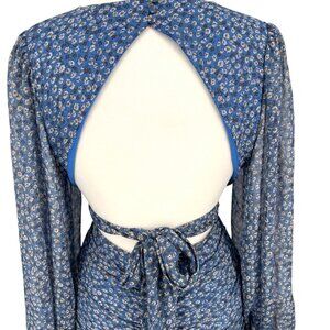 Bardot Floral V-Neck Long-Sleeve Mini Dress Ruffled Ruched Blue Size XL