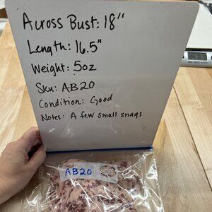 Good condition with minor small snags noted. Across bust = 18 inches, Length = 16.5 inches.