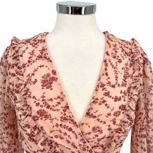 Bardot Floral Wrap Tie-Front Long-Sleeve Blouse Pink Red Size US 8 Medium