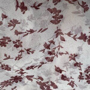 This Bardot blouse features a lightweight, semi-sheer fabric with a floral print, tie-front design, and long sleeves. Ideal for a stylish and polished look.