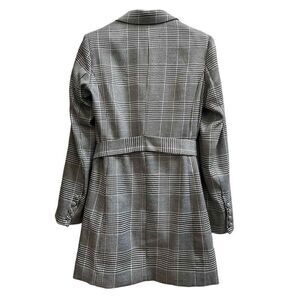 Bardot Gray Monochrome Glenchek Belted Double Breasted Trench Coat Size 6 Medium
