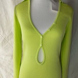 Bardot Green Plunge Neck Long Sleeve Bodycon Dress