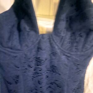 Navy Lace Lined Loaded top, Halter neck, fitted Knee Length Dress