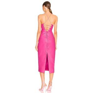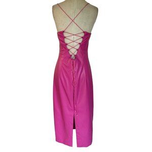 Bardot Helena Faux Leather Dress in Hot Pink New Womens Midi Vegan Cocktail