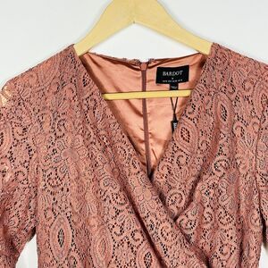 Bardot Isla Russet Brown Long Sleeve Side Ruched Lace Dress Womens Medium NEW
