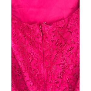 Own your next event in this sexy lace bralette dress by Bardot featuring a peek-a-boo chest cutout. Pink lace (40% Nylon, 40% Cotton, 20%Viscose). Lining (95% Polyester, 5% Elastane). Hourglass. Sleeveless. Sweetheart. Back zipper closure.