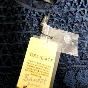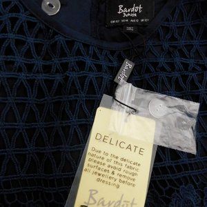 Bardot Junior Lace Eyelet Dress Kids Girls Size 14 Navy Sleeveless