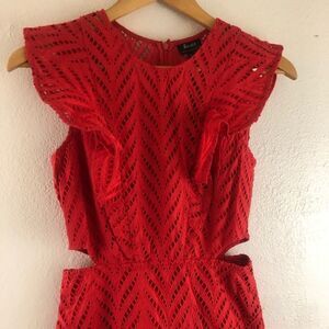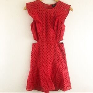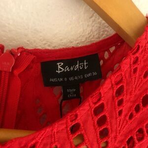 Bardot Kira Ruffle Cut Out Eyelet red dress size XS. New with tags