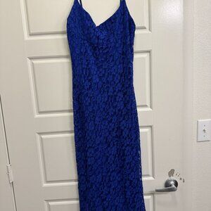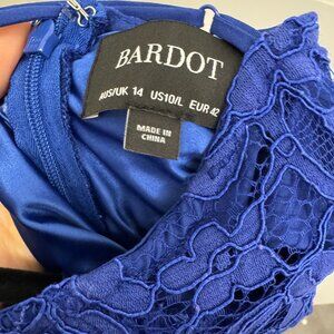Bardot Lace Bias Midi Dress - Size 10 - cobalt blue