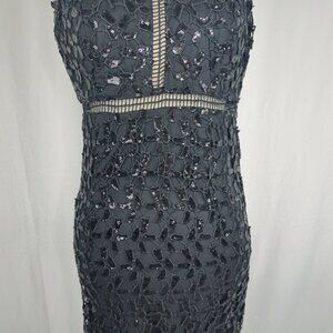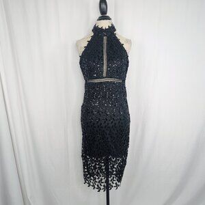 New with tags: Bardot "Gemma" black lace and sequin leaf midi dress