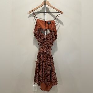 Bardot Leopard Frill Cut Out Mini Dress Size 12/XL