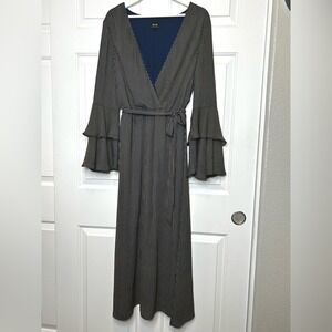 Keywords: maxi dress, long sleeve dress, bell sleeve dress, wrap dress, striped dress, party dress, cocktail dress, bohemian dress, boho chic, womens dress, occasion dress, formal dress, evening dress, special occasion