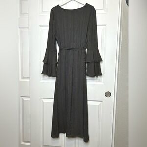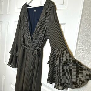 Bardot Loretta Striped Maxi Dress Long Sleeve Bell Sleeve Faux Wrap Dress 10