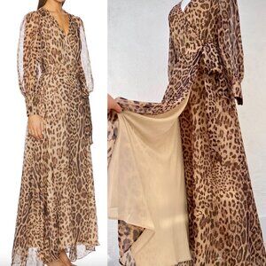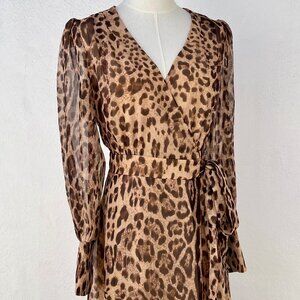 Pre-owned, gently used, great condition with minimal signs of wear, Bardot Lucianna Maxi Wrap Dress in Brown Leopard size medium. No holes, stains or flaws. The crepe fabric has the most delightful, fluttery drape, made me feel like a 1940s Hollywood starlet. The bishop sleeves are finished of with matching buttons. A gorgeous day to night dress that's really fun to wear.