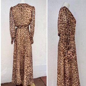 Bardot Lucianna Maxi Wrap Dress Brown Leopard (M) Old Hollywood Glamour Showgirl