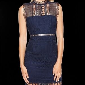 Bardot MARIANA LACE DRESS IN navy high neck knee length scalloped formal