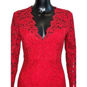 Bardot Midnight Lace Knee Length Dress in Famous Red Long Sleeve Size 8/M