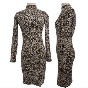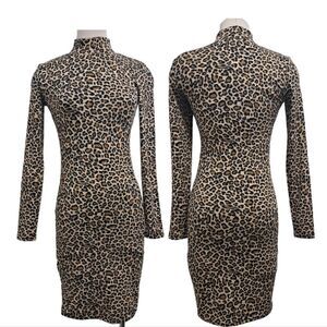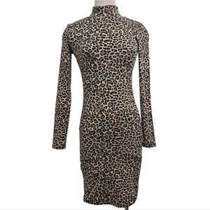 Bardot Mock Neck Animal Print Cheetah Bodycon Dress Size XS Brown/Tan/Black