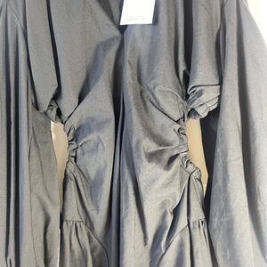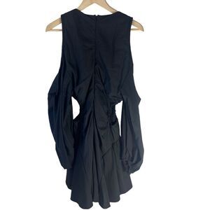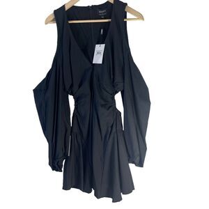Bardot NWT Apollo Black Poplin Blouson Cold Shoulder Mini Dress Sz 10