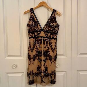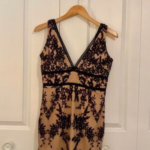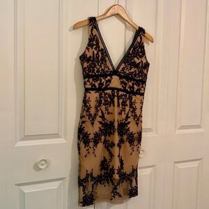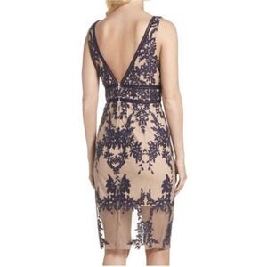 Bardot Navy Blue Cream Nude Embroidered Bodycon Sleeveless Dress Size 6