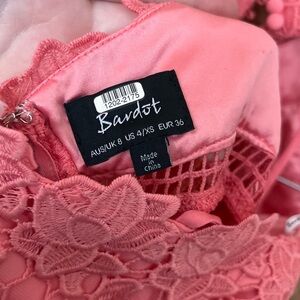 Bardot Noni Floral Lace Halter Neck Knee Length Dress Coral Size US 4/XS RTR