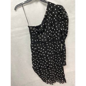 Bardot One Shoulder Lace Long Puff Sleeve Black and White Mini Dress Sz 12