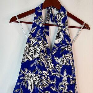 Bardot Petro Blue Tropical Floral Halter Dress Womens Small Boho Summer Vacation