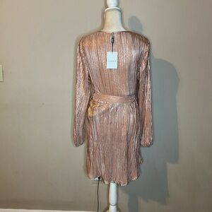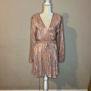 💃🏻Bardot Pink Ruffled Tie Front Long Sleeve Dress