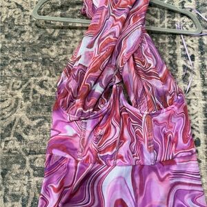 Bardot Pink Swirl crisscross top tie in the back Mini Dress size xl