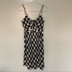 Bardot black and white gingham plaid knee length dress. Cut out detail under the bust. Size 6 or small. Good used condition no flaws.
