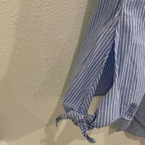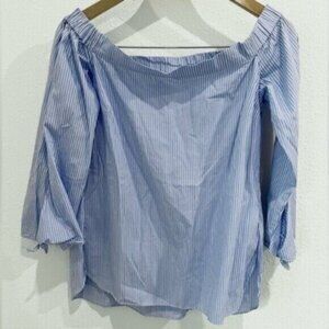 Bardot Preppy Bell Sleeve Striped Top Feminine Nautical Stretch Blue White