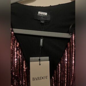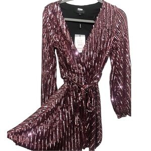 Bardot Revolve NWT Deep V Sequin Tie Waist Long Sleeve Mini Dress XS